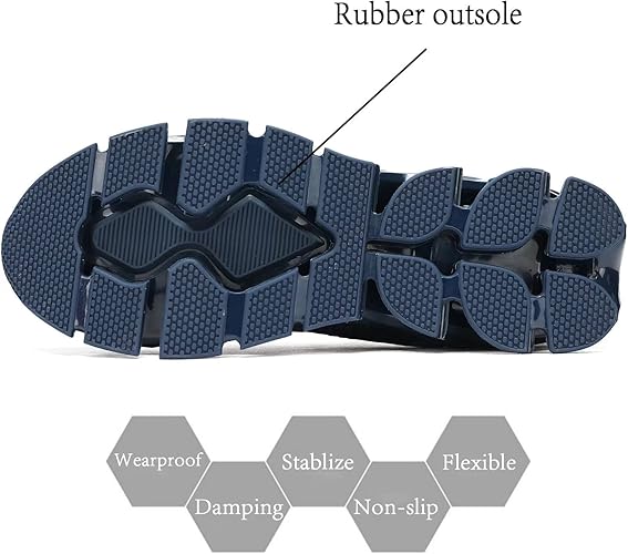 - The shoes sole made from ultra light natural rubber material,The rubber outsole offers impact cushioning, anti-twist, abrasion-resistant and anti-slip performance,helping users adapt to any road condition.
